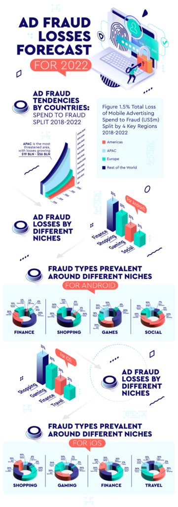 In today’s infographics, we present research on ad fraud losses by countries and industries predicted for 2022. See the statistics and learn how bots can affect your campaigns in the nearest future.