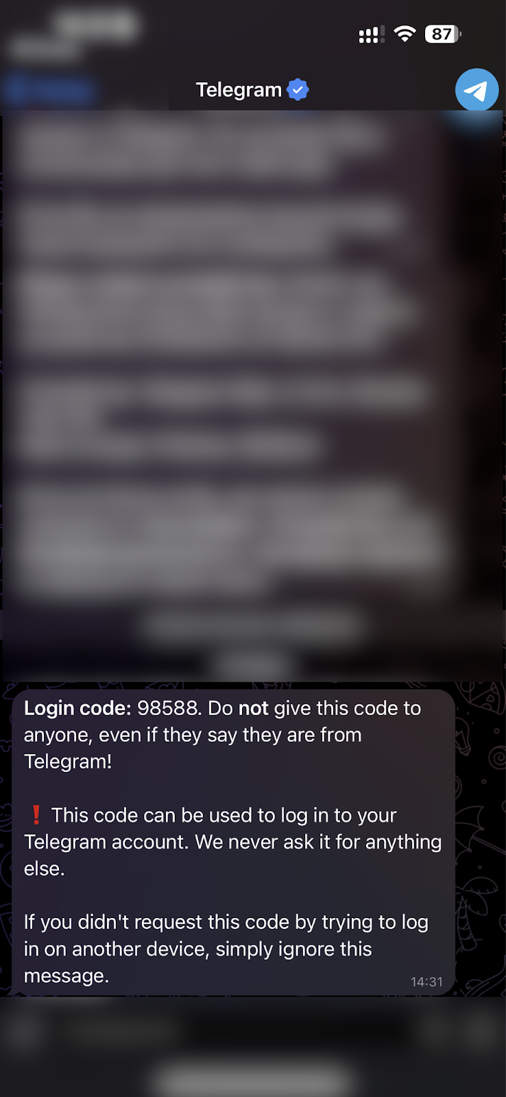 Once we obtained the needed number, we confirmed that after a user entered their phone number, they received an actual Telegram login code. Submitting that code on the scammer’s page granted the attackers access to the victim’s account.